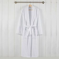Featuring an elegant thick shawl collar design, our full terry high quality 100% USA grown cotton bathrobes match the quality of 5 star hotels and spas around the world. Bring the feel of luxury to your home. Created with looped combed cotton, these robes are rated at 450 GSM, which means they are ultra absorbent. Also heavy and thick, but not bulky, to keep you warm especially during the cooler months.