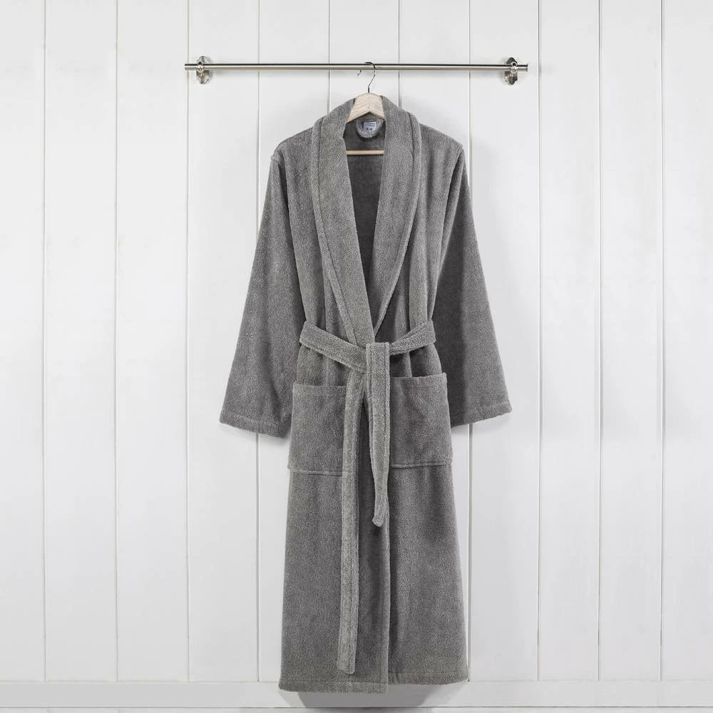 New ๐ŸŽ 100 % USA Cotton Classic Bathrobe with Shawl Collar Stone Small/Medium by MODERN THREADS ๐Ÿ˜€