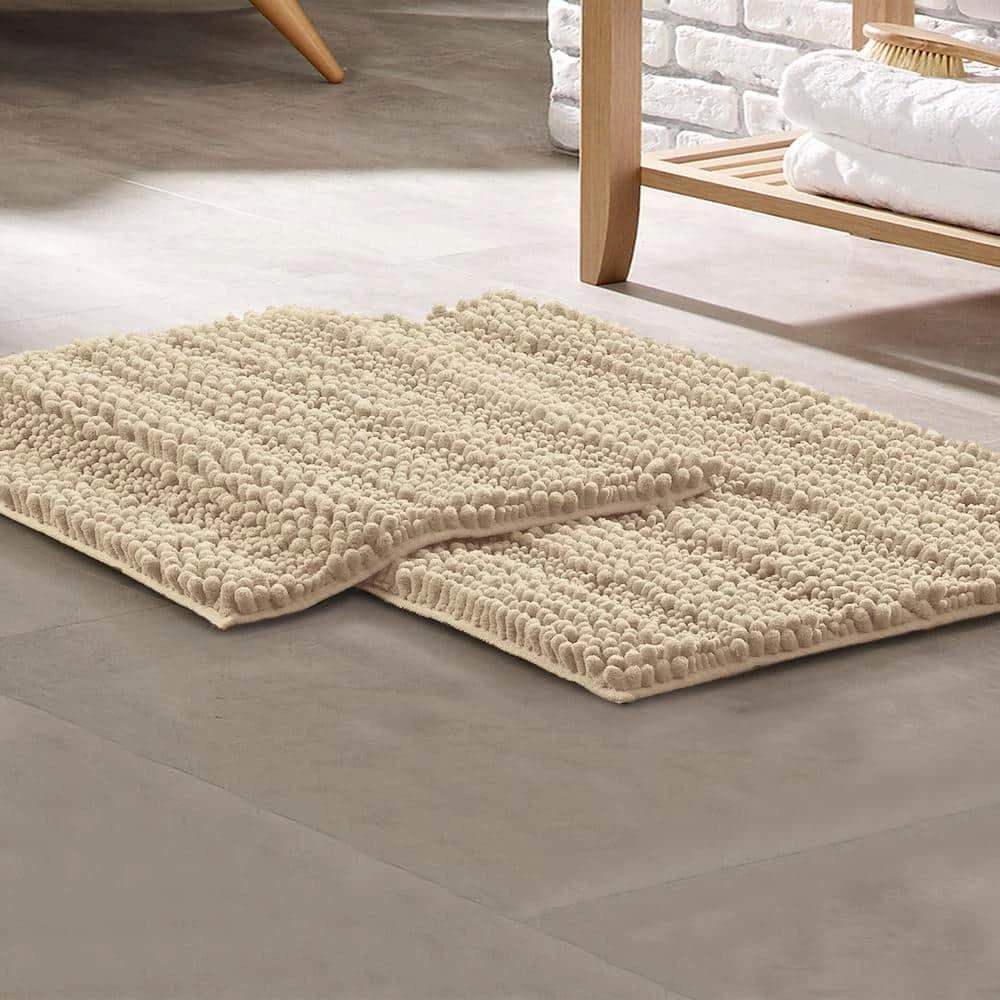 Pamper your feet by stepping out of the shower and onto luxury with the soft 2-Pack Chenille Noodle with non-slip backing bath mat set by Amrapur Overseas. This set includes 17×24 inch & 21×34 inch bath rug which are not only comfortable to the touch, but are also absorbent and durable. These bath mats are additionally available in a variety of colors, making these stylish rugs suitable to compliment any bathroom decor.