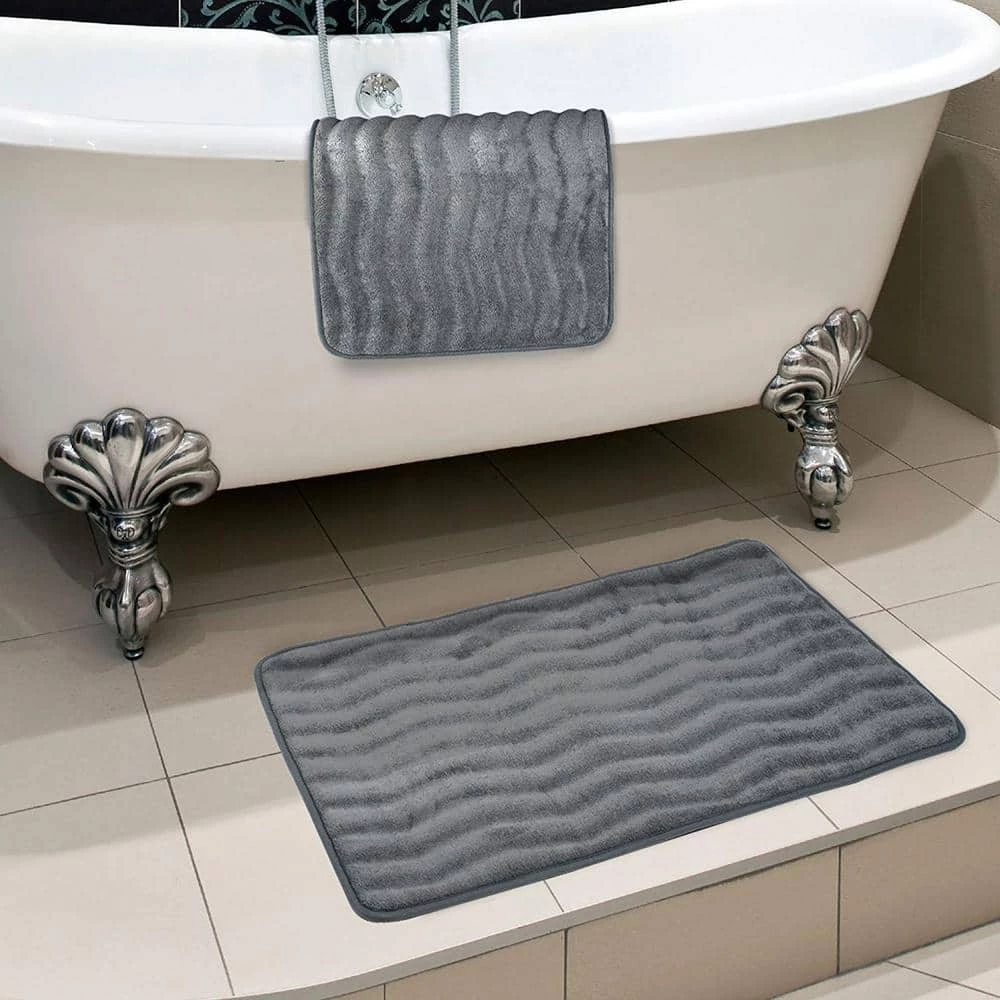 Step out of your tub and into luxury with the 2-Piece Memory Foam Bath Mat Set by Lavish Home. Featuring a soft and absorbent top layer and a memory foam core bringing you maximum comfort while you dry off and get ready to start your day. Includes one over sized and one standard sized rug with non-skid bottom.