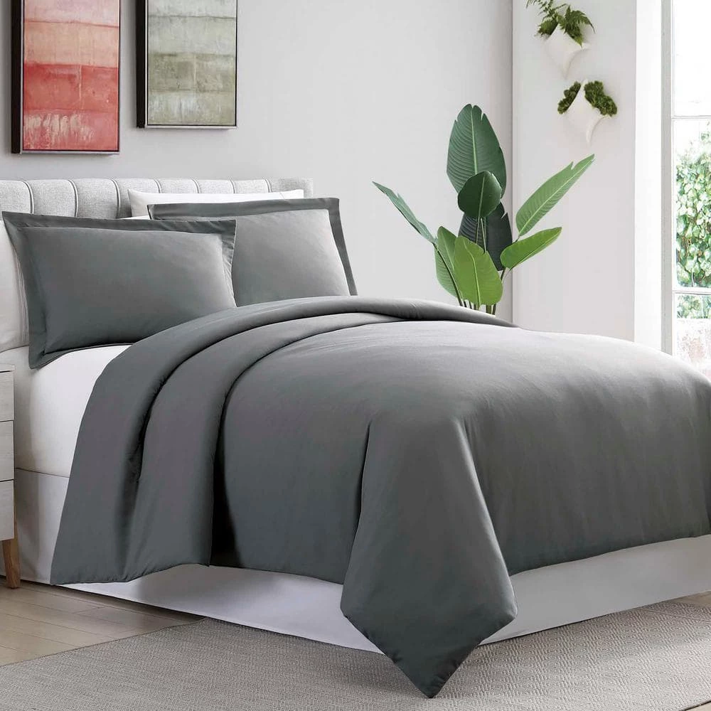 Enhance and improve your bedroom decor with the all new Amrapur Overseas Luxury Duvet Cover Set. This luxury duvet cover set is stitched for durability to last a lifetime and raises the bar for comfort and elegance. A 4 in. flap with button closure ensures that the duvet cover is secure. Includes 2-matching pillow shams to bring elegance to any bedroom.
