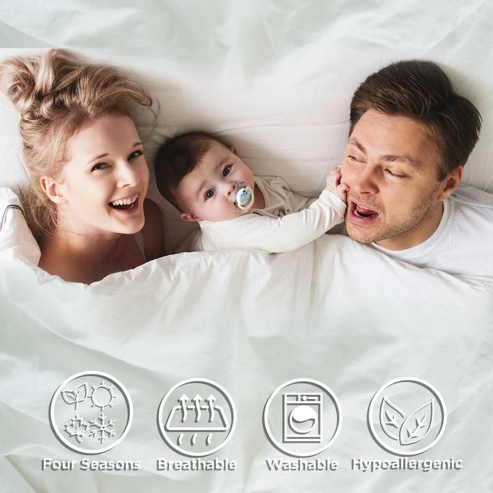 - DOWN ALTERNATIVE FILLING- The quilt features 100% 230 GSM polyester filling that doesn’t clump and shift like goose down to provide warmth and luxurious softness without triggering feather allergies. It’s breathable for year-round use.