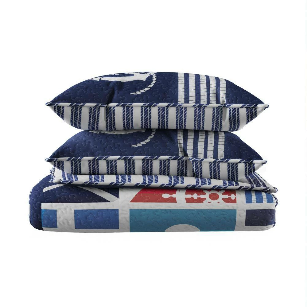 Refresh your bedroom with the Lavish Home 3-Piece Mariner Design Full/Queen Hypoallergenic Quilt Bedspread Set. It features a nautical-themed design on the face and a rope inspired repeating stripe on the reverse. Made from premium-quality microfiber polyester, the quilt offers optimum softness and warmth. This full/queen quilt is breathable and hypoallergenic for comfort and safety. The set comes complete with a queen quilt and two shams.