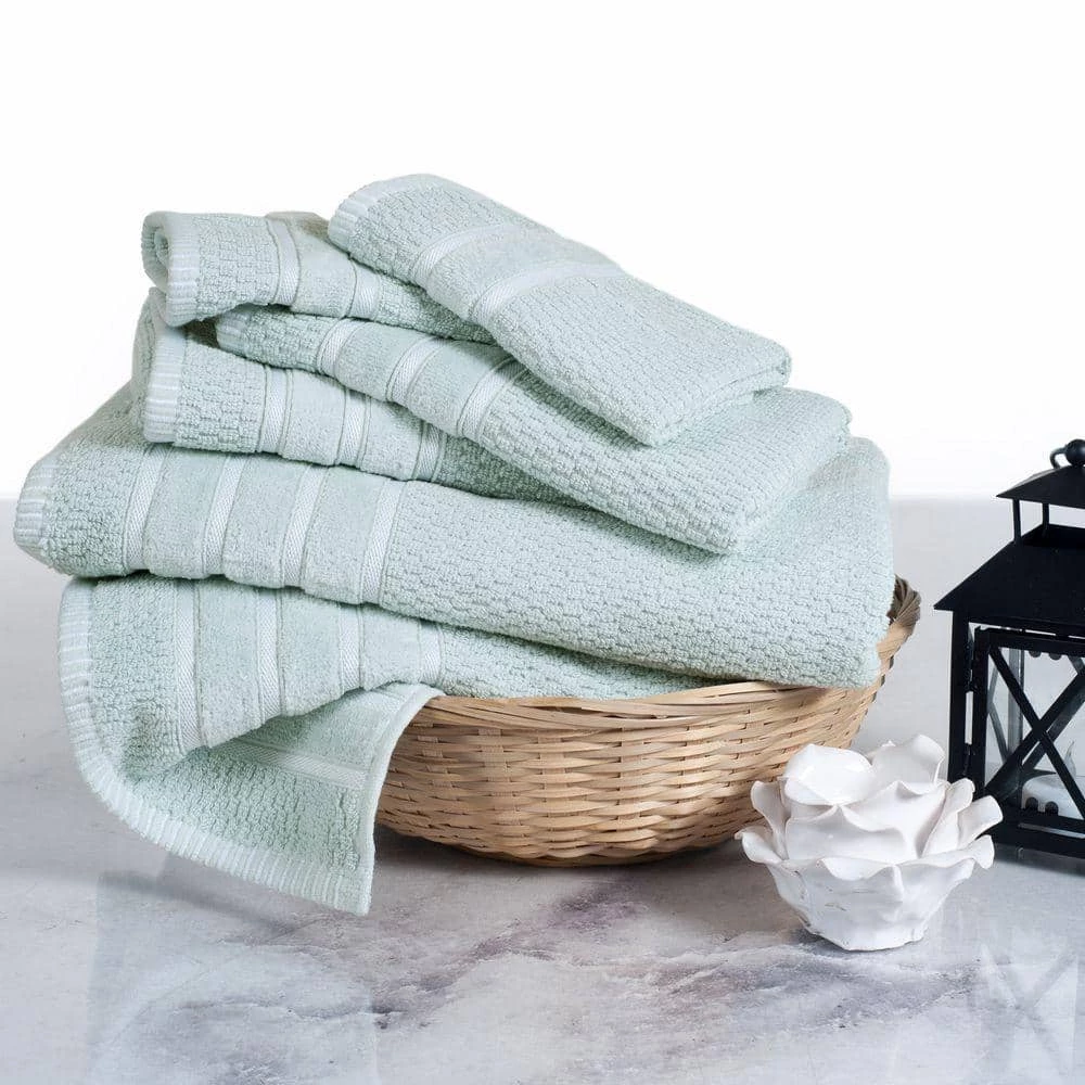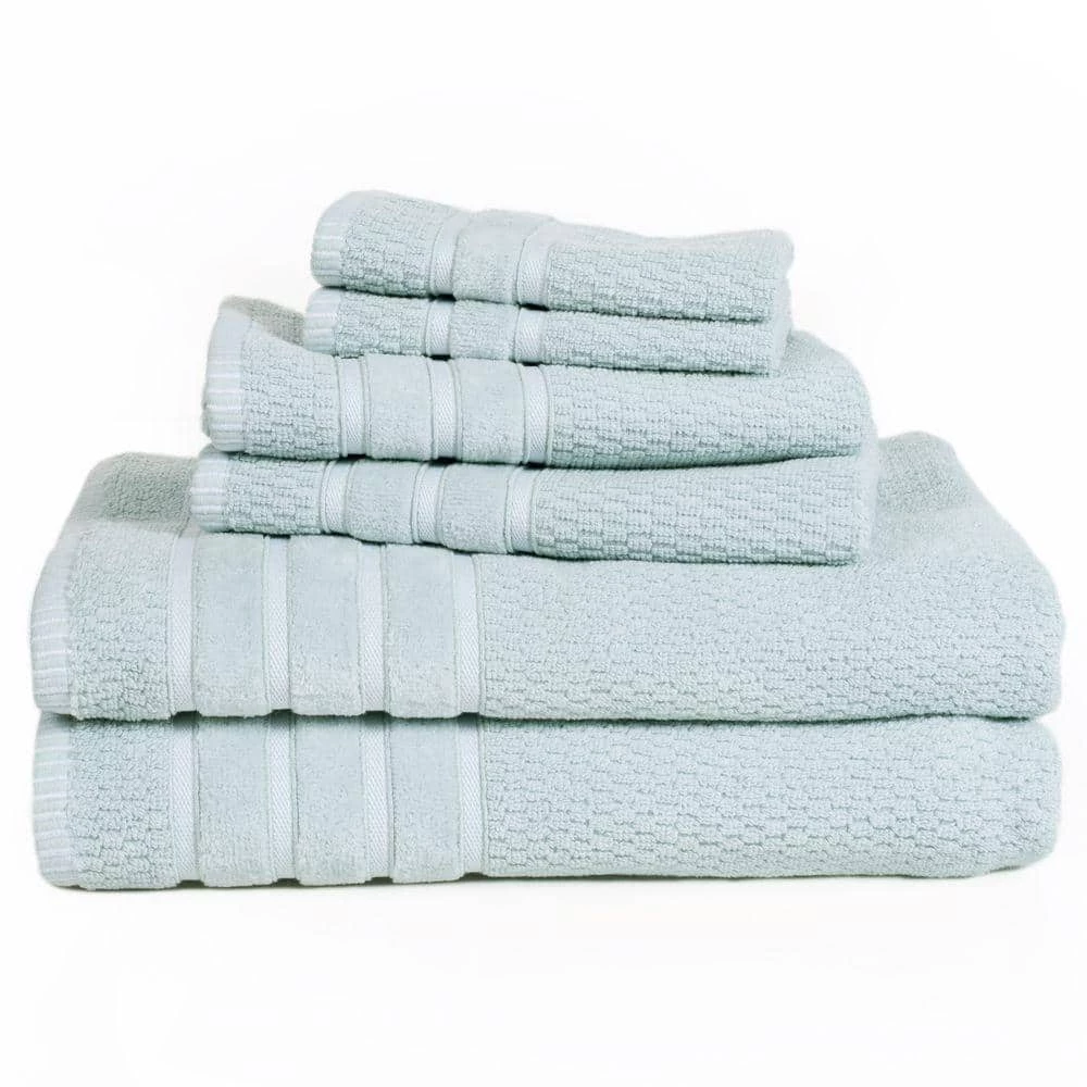 - Set includes: 2-bath towels (27.5 in. x 53.5 in.) 2-hand towels (16 in. x 27 in.) 2-washcloths (13 in. x 13 in.)