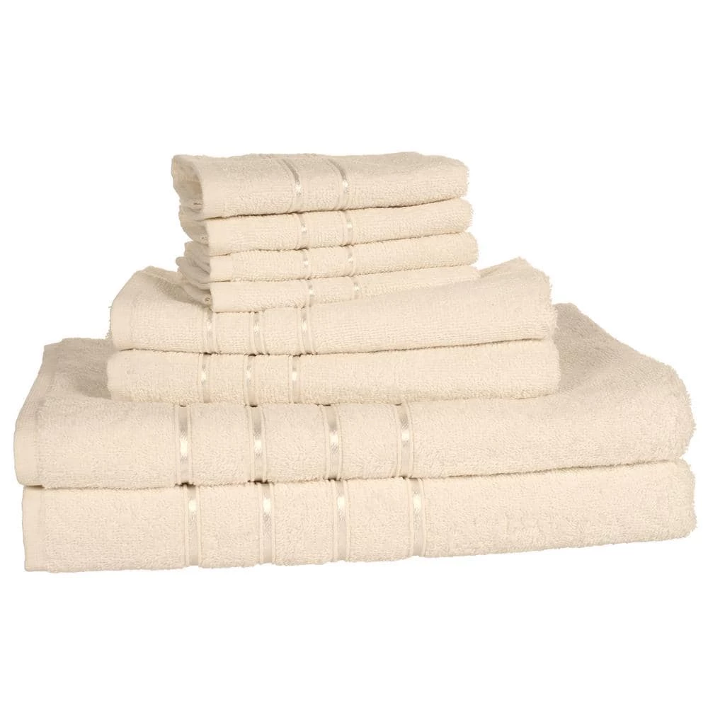 These pure cotton plush towels will bring form and function to any bathroom. Comfortable, soft, stylish and absorbent, the Lavish Home 8 Piece 100% Cotton Plush Bath Towel Set will add a touch of elegance to any decor. This 8 piece set provides a luxurious bathroom experience.