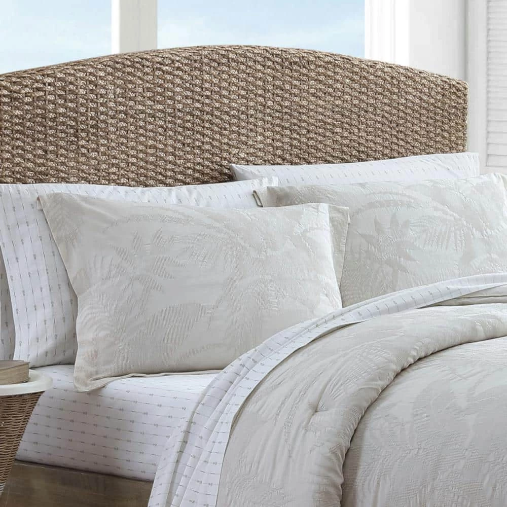 - The Tommy Bahama Abalone pattern features beautiful shades of ivory woven together to look like a solid comforter but with subtle tropical palm design