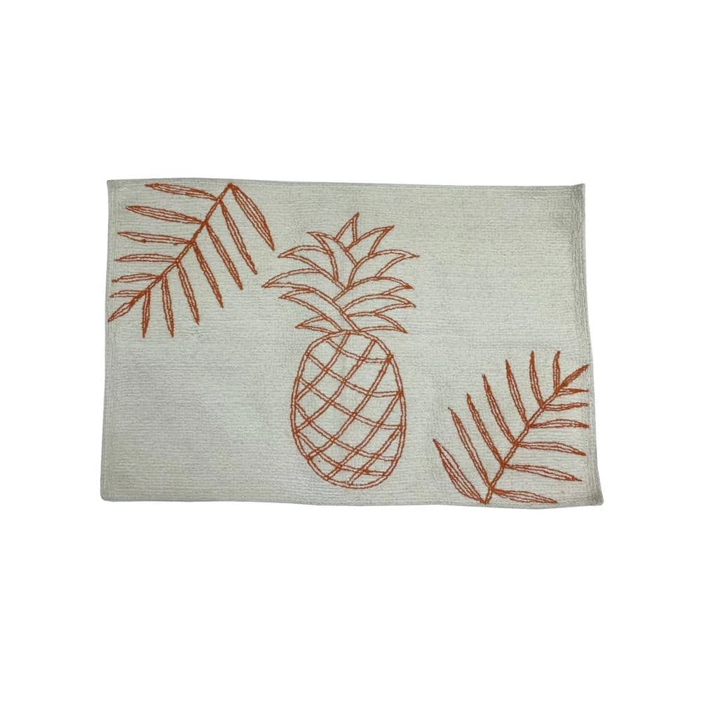 Decorative block prints are a hallmark of island style and the inspiration behind the Batik Pineapple Bath Collection from Tommy Bahama. This reversible rug features a pineapple and palm fronds Pineapples and palm fronds in tones of burnt orange across a warm sand ground. The Yarn Dye Tufted Rug is 100% cotton and machine washable for easy care. Measures 20 in. L x 30 in. W .