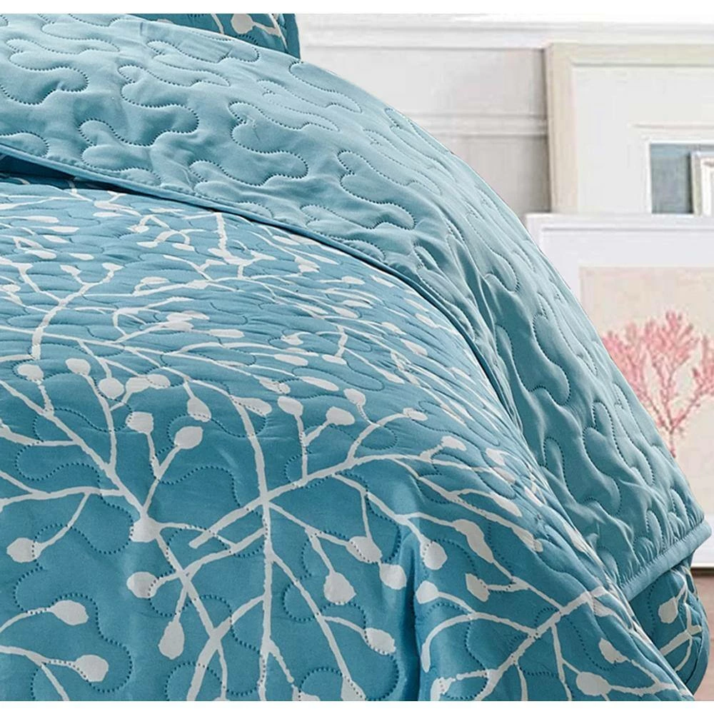 Upgrade your bedroom esthetic, with this 3-piece quilt. This microfiber set includes 1-quilt, and 2-pillow shams. A stunning print on the front and reverse, makes this set great for 2-looks. All items are machine washable for easy care. Features: Set includes 1-quilt, and 2-shams (1-sham in twin size) Lightweight Reversible Machine washable Shell: Polyester Microfiber Poly filled Twin Dimensions Quilt: 68 in. wide x 86 in. long Sham: 20 in. wide x 26 in. long Full/Queen Dimensions Quilt: 88 in. wide x 92 in. long Shams: 20 in. wide x 26 in. long King Dimensions Quilt: 106 in. wide x 92 in. long Shams: 20 in. wide x 36 in. long Country of Origin: China.