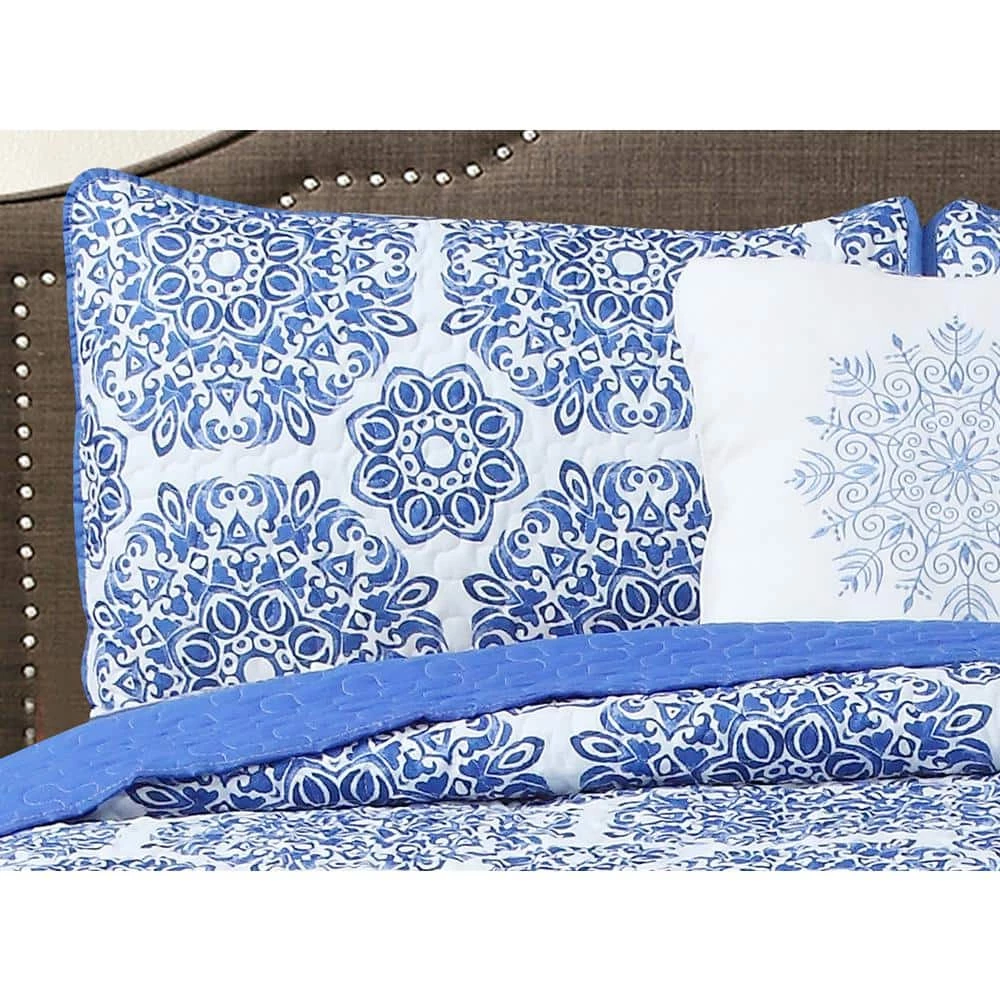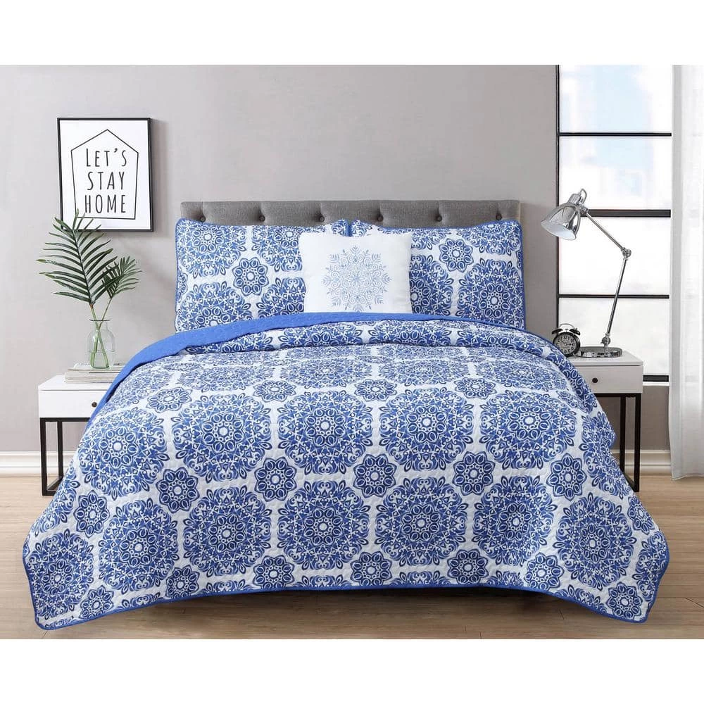 Upgrade your bedroom esthetic, with this 4-piece Quilt Set from Harper Lane. This microfiber set includes one quilt, two pillow shams (1 sham in twin size), and 1-decorative pillow. A beautiful look on the front, and contrasting print on the reverse, makes this set great to upgrade and update your room. All items are machine washable for easy care. Set includes 1 quilt, and 2 shams (1 sham in twin size), and 1 decorative pillow Lightweight Reversible Machine washable Shell: Polyester Microfiber Poly filled Twin Dimensions Quilt: 68 in. wide x 86 in. long Sham: 20 in. wide x 26 in. long Decorative Pillow: 18 in. wide x 18 in. long Full/Queen Dimensions Quilt: 86 in. wide x 86 in. long Decorative Pillow: 18 in. wide x 18 in. long King Dimensions Quilt: 102 in. wide x 86 in. long Decorative Pillow: 18 in. wide x 18 in. long.