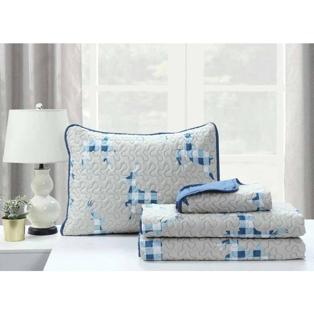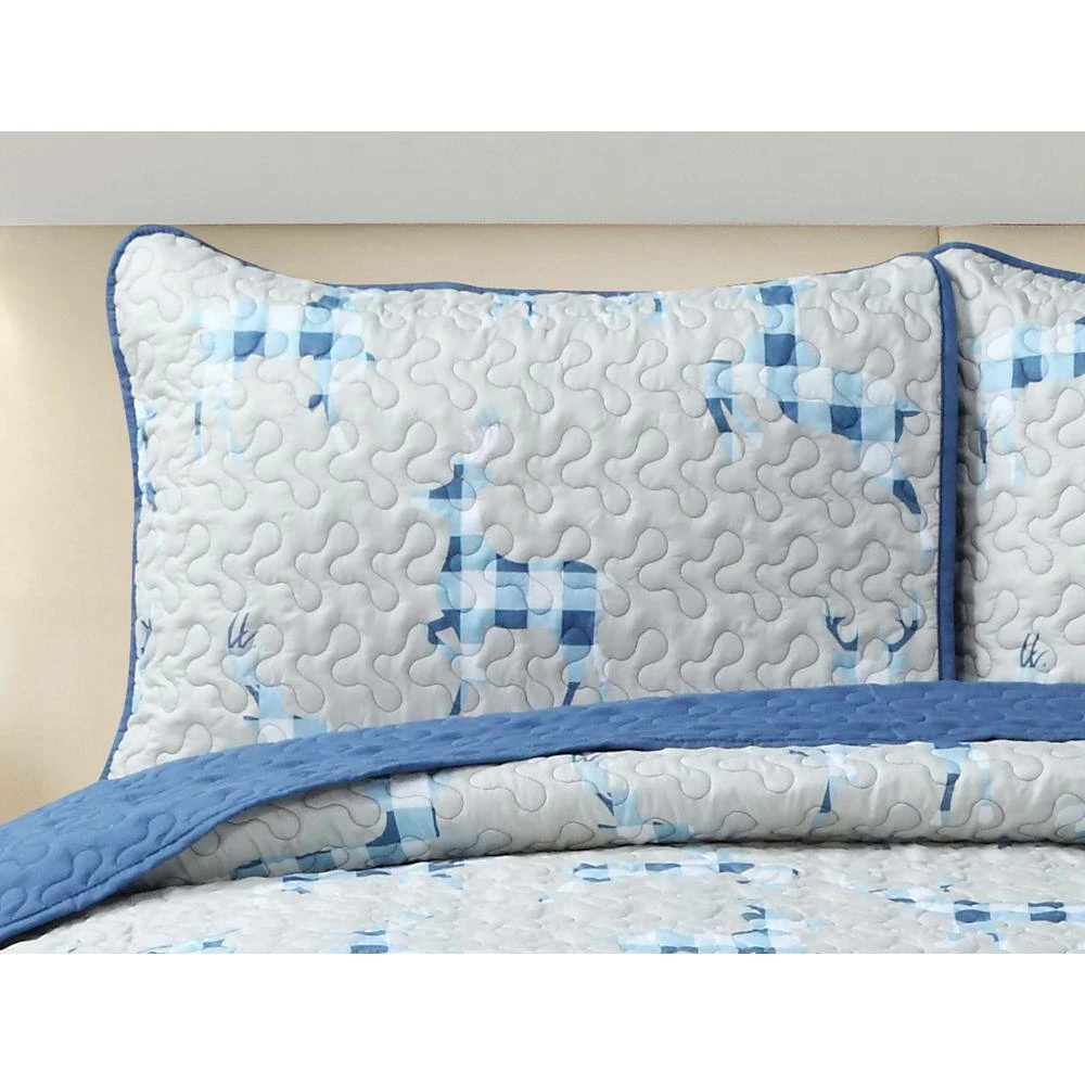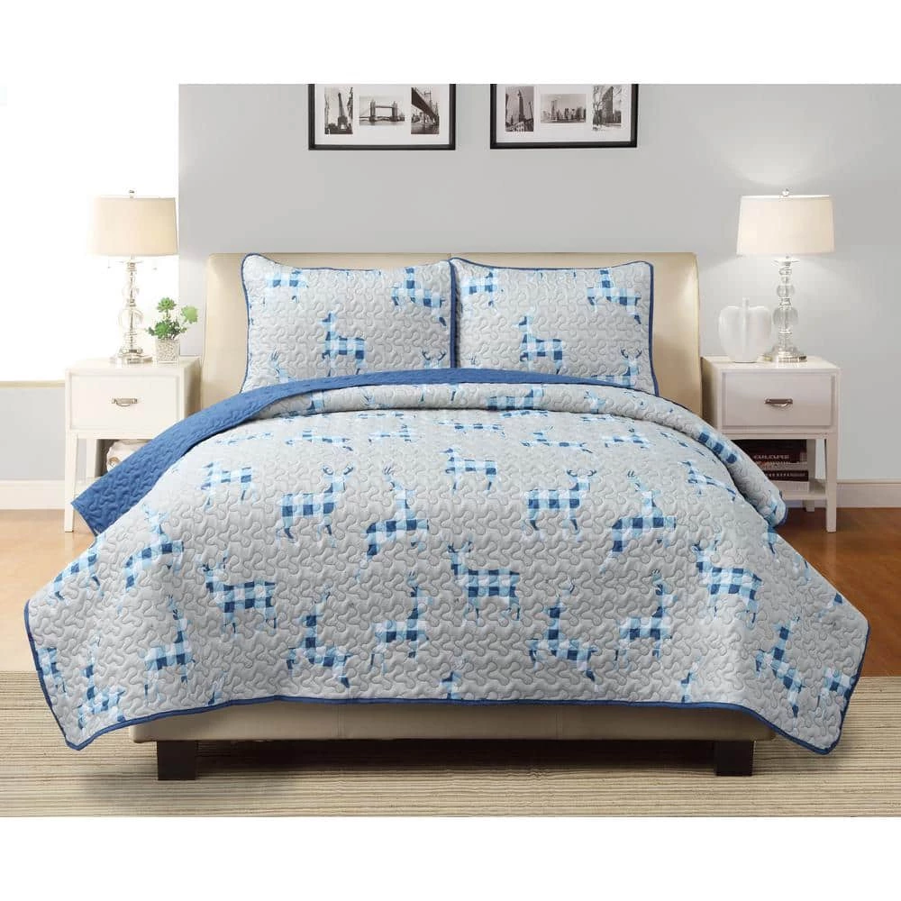 Upgrade your bedroom esthetic, with this 3-piece quilt set from Harper Lane. This microfiber set includes one quilt, and two pillow shams. A stunning vibrant print on the front and solid on the reverse; makes this set great for two looks. All items are machine washable for easy care. Set includes 1 quilt, and 2 shams (1 sham in twin size) Lightweight Reversible Machine washable Shell: Polyester Microfiber Poly filled Twin Dimensions Quilt: 68 in. wide x 86 in. long Sham: 20 in. wide x 26 in. long Full/Queen Dimensions Quilt: 86 in. wide x 86 in. long Shams: 20 in. wide x 26 in. long King Dimensions Quilt: 102 in. wide x 86 in. long Shams: 20 in. wide x 26 in. long.