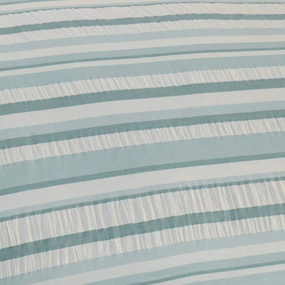 Stripes are always in style and a favorite Tommy Bahama motif because of their versatility and relaxed attitude. This monochromatic palette of silvery blues on a soft white cotton ground inspires thoughts of sea spray and cool breezes and is sure to have a calming effect in any setting. A subtle seersucker finish adds unique textural interest. Layer in our white Isla Morada European shams and accent pillow as well as our signature relax pillow in gray and make your escape complete. The coordinating shams feature an envelope closure. Duvet cover features a bottom button closure with additional inner corner ties. Duvet cover set is machine washable for easy care. Full/Queen Duvet Cover Set includes: One full/queen duvet cover (92″L x 88″W) and two standard shams (21″L x 27″W), King Duvet Cover Set includes: One king duvet cover (92″L x1 07″W) and two king shams (21″L x 37″W).