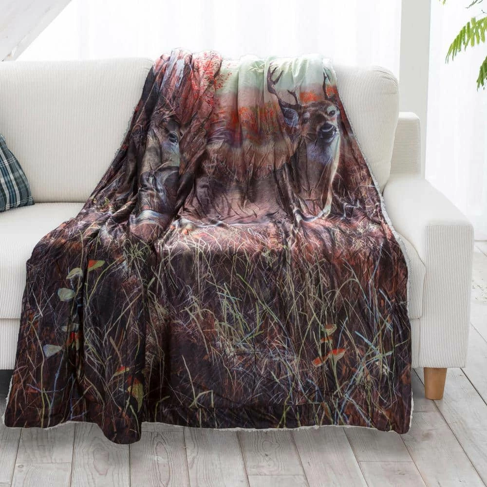 - BRIGHT COLORS AND FUN DESIGN – This plush fleece blanket features a rustic print of deer entering a clearing using vibrant colors of green, blue, red, plus many more. This blanket captivates the beauty of the outdoors in a modern scene, and would make the perfect gift for hunters, adults, kids, or anyone who enjoys wildlife!