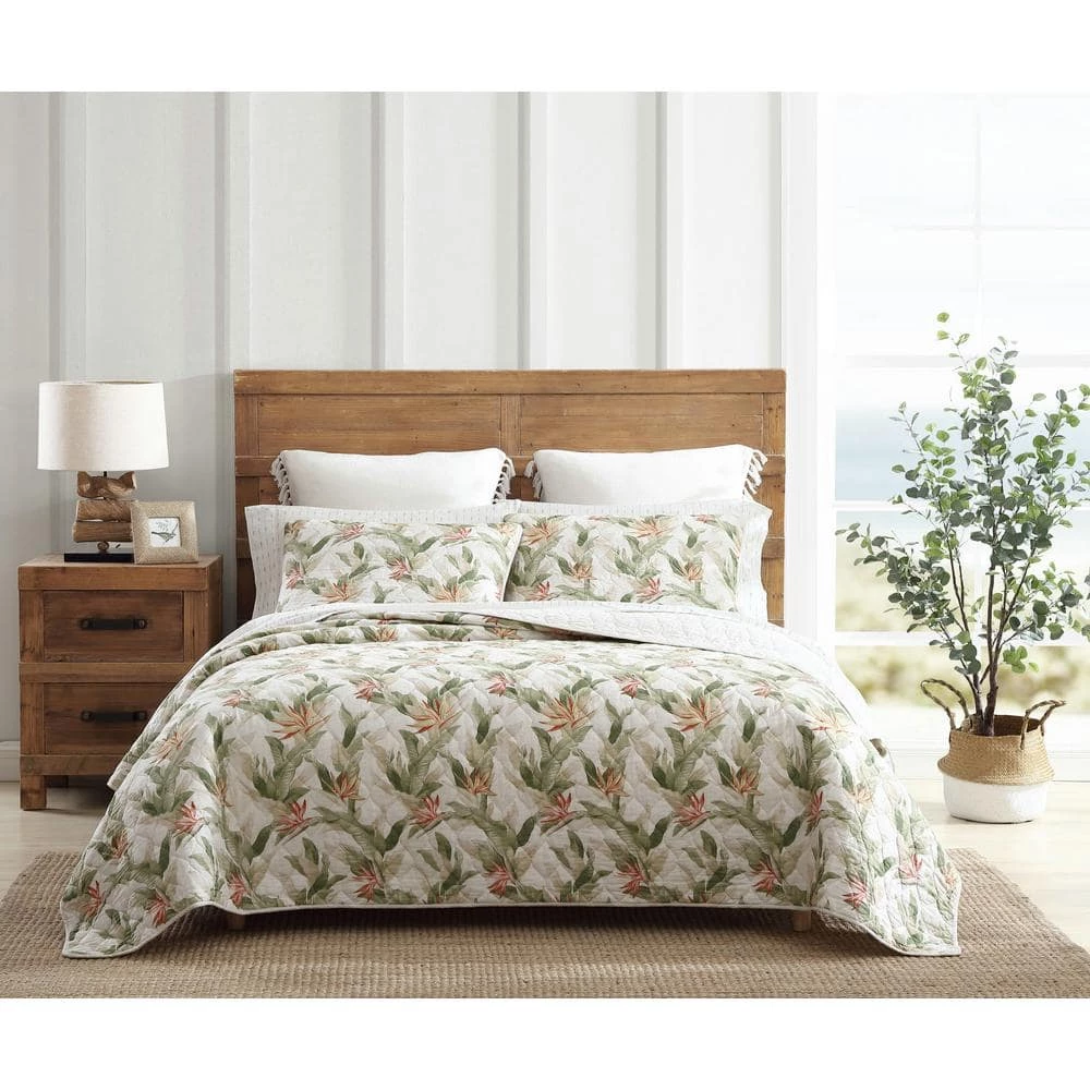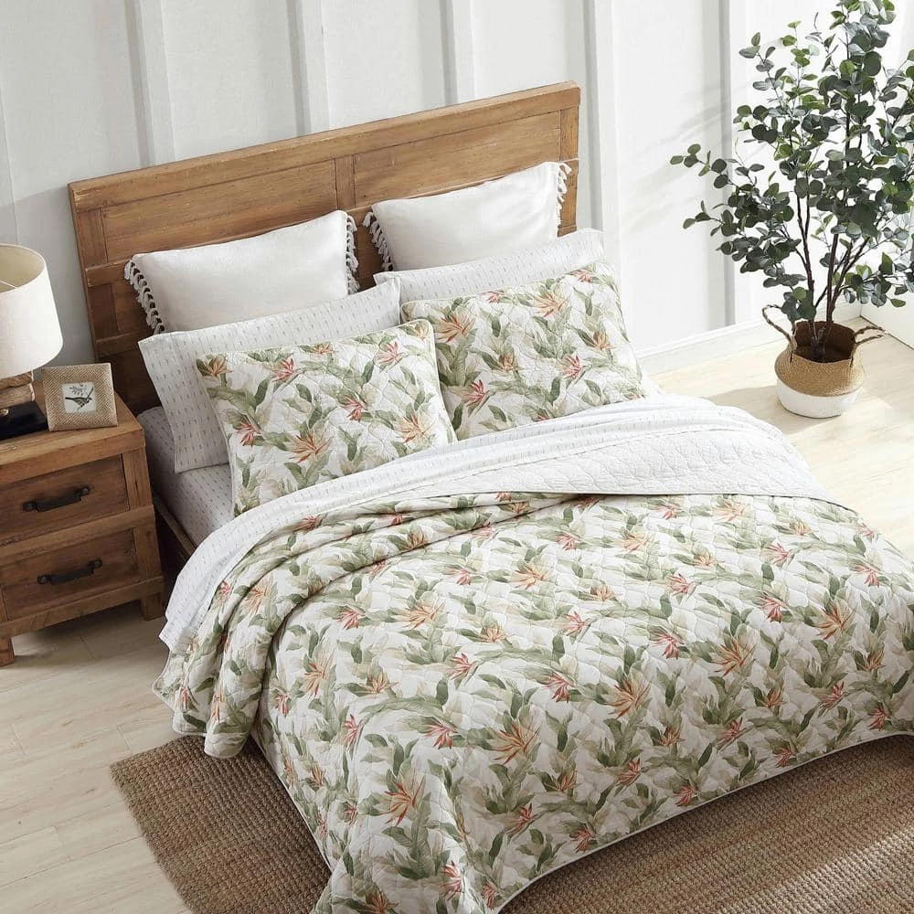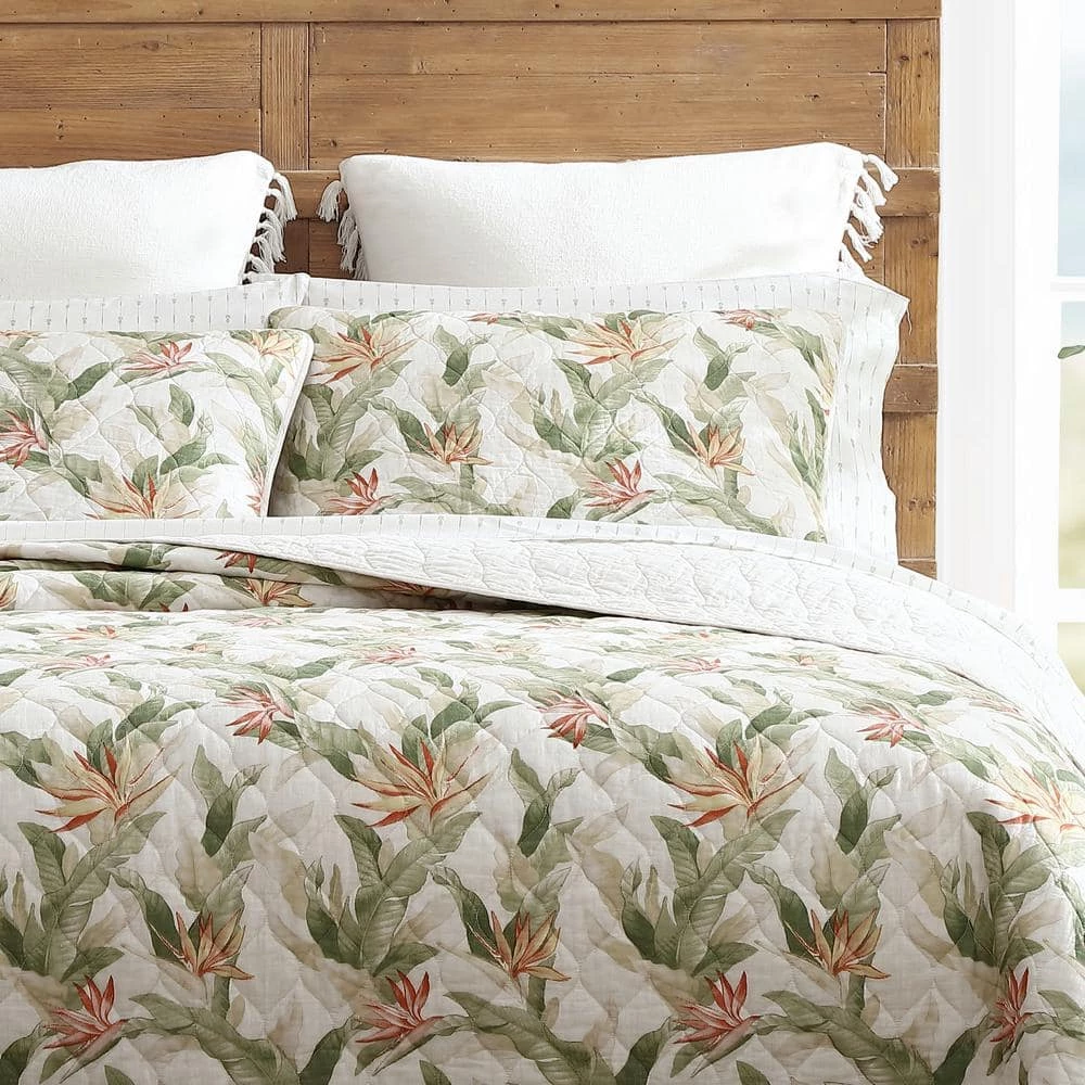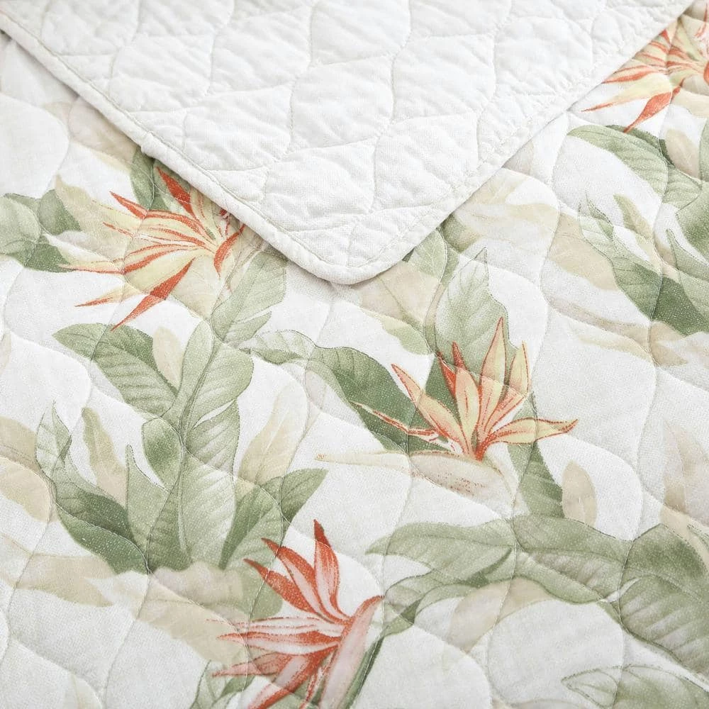 - Our Tommy Bahama hawaiian royal quilt features yellow and orange tropical flower with a green leaf motif on an ivory ground; the reverse is ivory