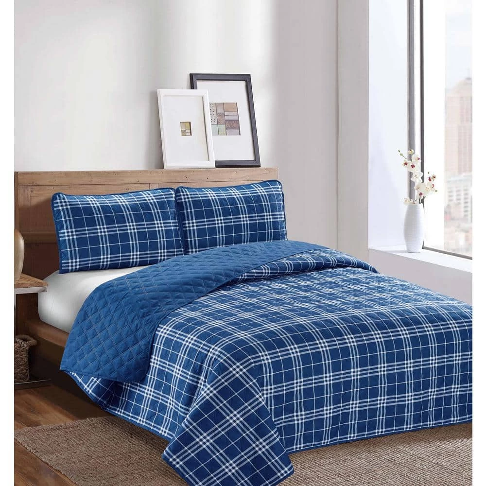 Upgrade your bedroom esthetic, with this 3-piece quilt set from Harper Lane. This microfiber set includes one quilt, and 2-pillow shams. A stunning and vibrant print on the front and contrast print on the reverse; makes this set great for two looks. All items are machine washable for easy care. Set includes 1 quilt, and 2 shams (1 sham in twin size) Lightweight Reversible Machine washable Shell: Polyester Microfiber Poly filled Twin Dimensions Quilt: 62 in. wide x 86 in. long Sham: 20 in. wide x 26 in. long Full/Queen Dimensions Quilt: 86 in. wide x 90 in. long Shams: 20 in. wide x 26 in. long King Dimensions Quilt: 90 in. wide x 106 in. long Shams: 20 in. wide x 36 in. long.