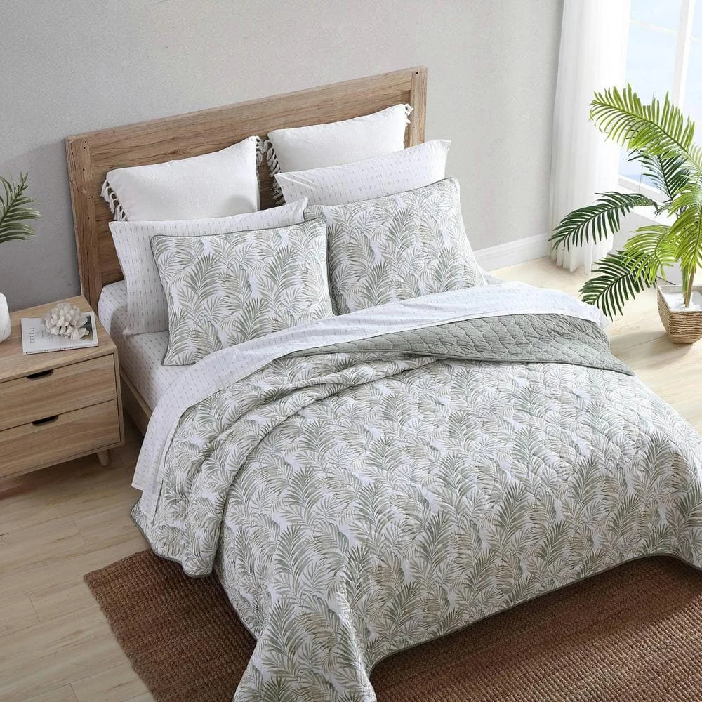 - Our Tommy Bahama maui palm quilt features a printed sage palm leaf motif on a white ground; the reverse is sage