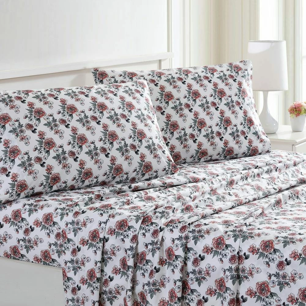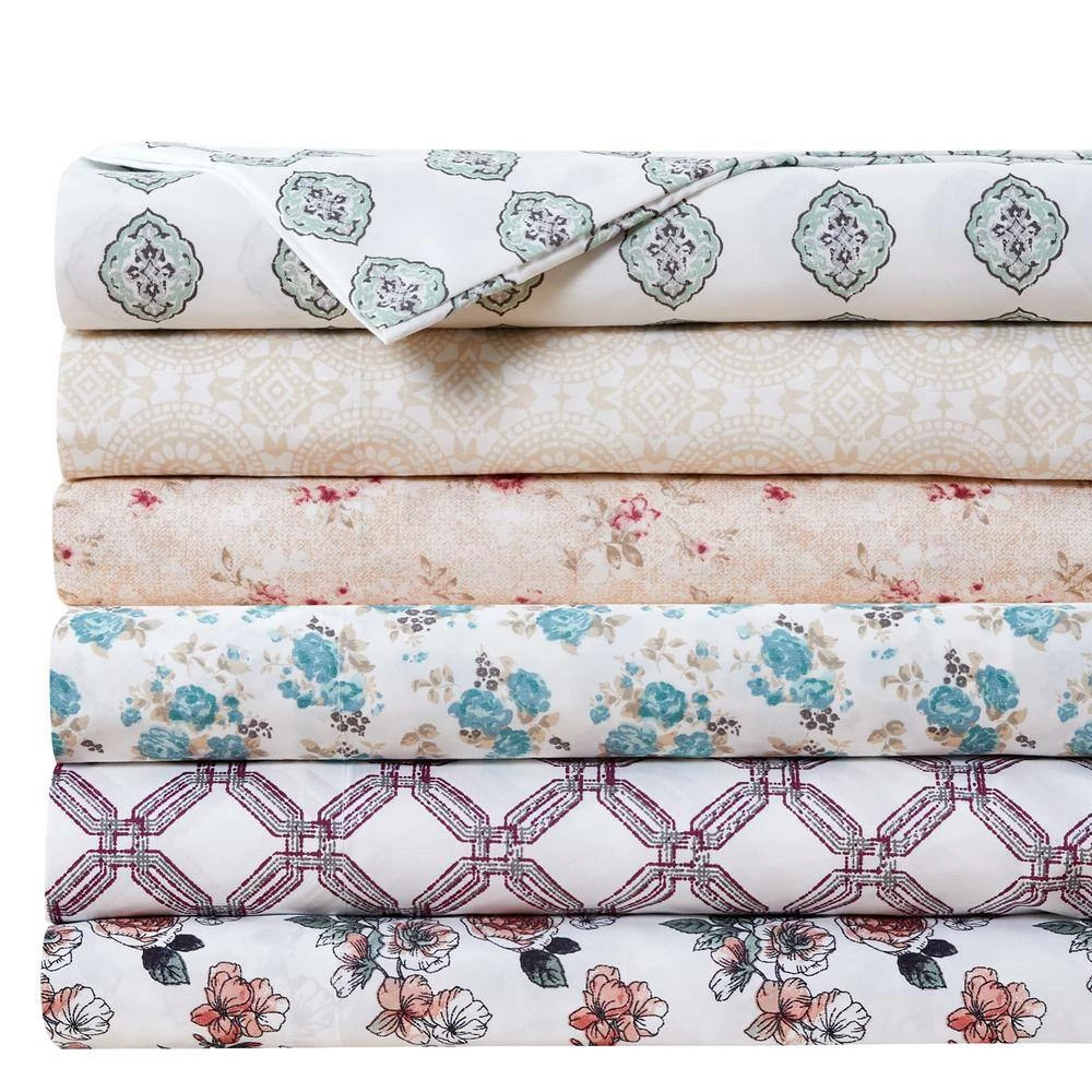 Snuggle into bed for a good night’s sleep when you choose this comfortable sheet set. Available in various printed designs. The printed sheet set includes a top sheet, matching pillowcases, and a fitted bottom sheet with generous 14 in. deep pockets for a snug, non-slipping fit.