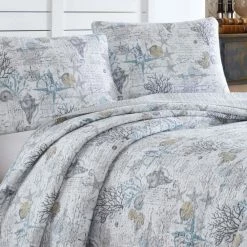 Top 10 ๐ฅ Beach Bliss 3-Piece Gray Graphic Cotton Full/Queen Quilt Set by Tommy Bahama ๐