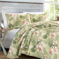 Best Pirce ๐ Tropical Orchid 3-Piece Green Floral Cotton King Quilt Set by Tommy Bahama ๐