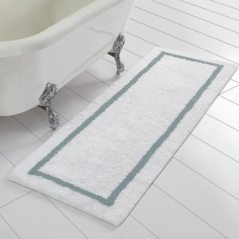 Pamper your feet by stepping out of the shower and onto luxury with the soft 100% Cotton Long Bath Rug by Amrapur Overseas. Crafted with plush cotton, each reversible 22 in. x 60 in. rug is not only comfortable to the touch, but is also absorbent and durable. This bath runner is additionally available in a variety of colors, making these stylish rugs suitable to compliment any bathroom decor.