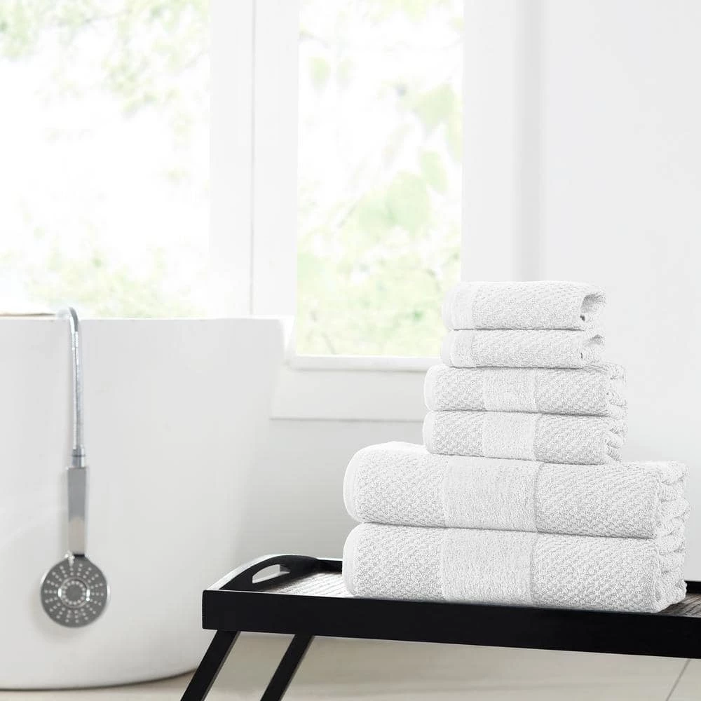 - 6-piece towel set includes 2-bath towels, 2-hand towels, and 2-washcloths