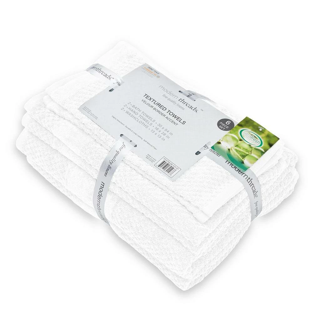 Soft and cozy, this Modern Threads towel set will bring color, style, and comfort to your bathroom. The set is crafted from 100% cotton, and includes two bath towels, two hand towels, and two wash towels, each with a textured rib design that allows for quick drying. The machine washable set is available in a variety of trendy colors to enhance the style and convenience of your bathroom.