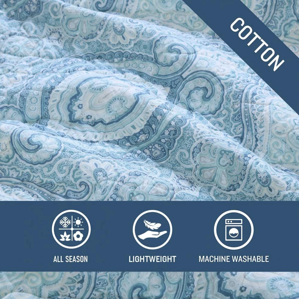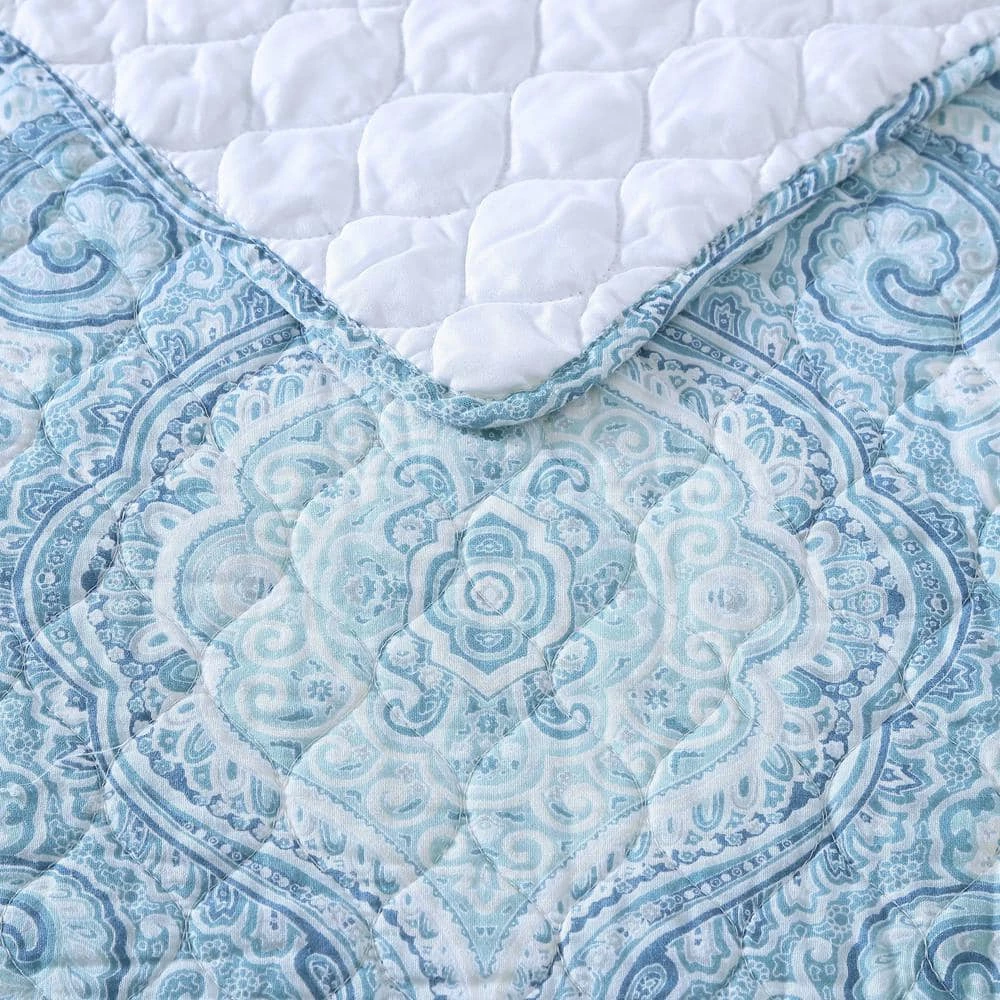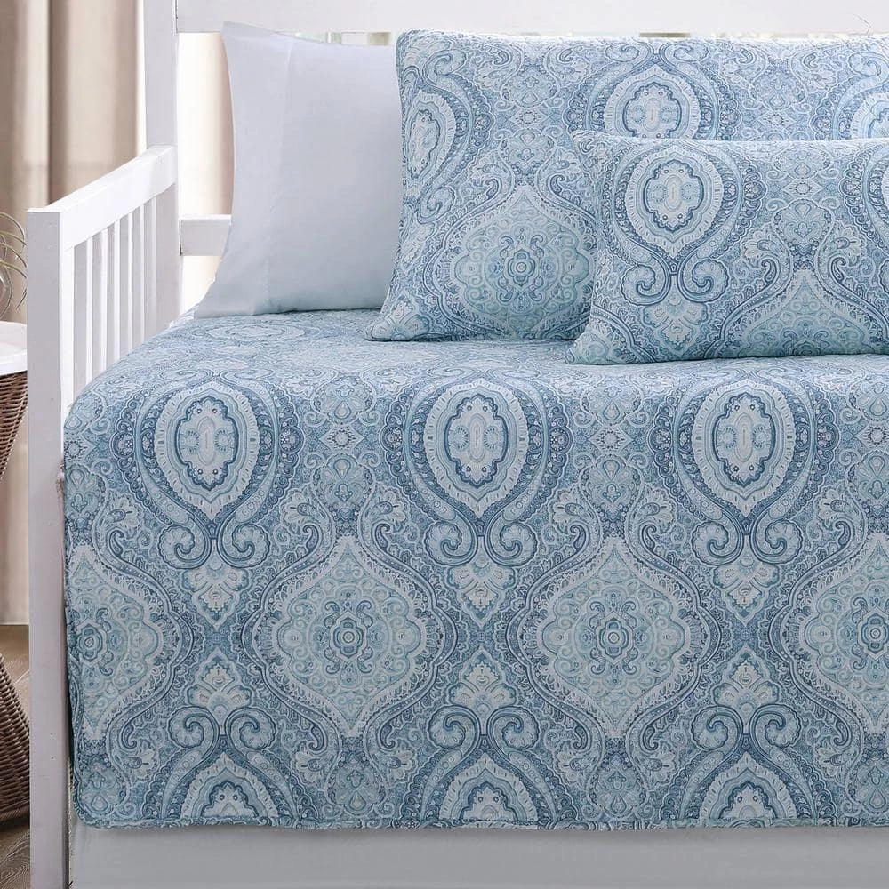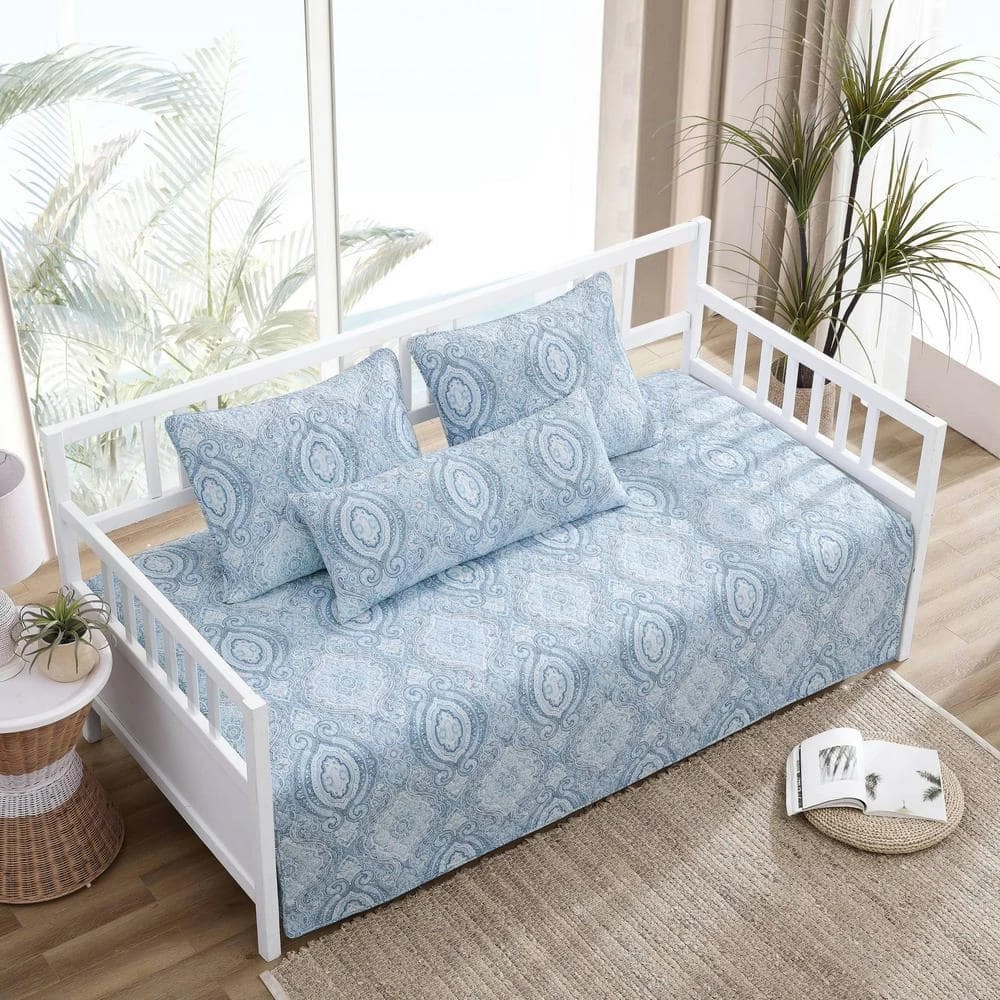 - This daybed cover set features a multi blue and ivory geometric medallion print on a light blue ground