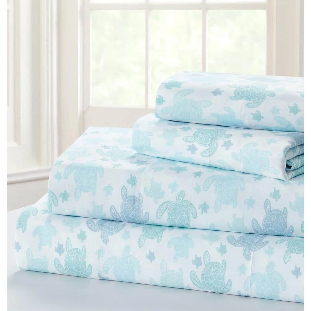 Bring in a little something breezy with the beauty of this tropical sheet set. The printed motif is lively and lovely, offering a bit of color and personality. The sheets are lightweight and machine washable for years of soft and lasting use. Features: Set includes 1-flat sheet, 1-fitted sheet, and 2-pillowcases (1-pillowcase in twin size), Lightweight design, Machine washable, Polyester microfiber, Fade resistant 12 in. – 15 in. pocket depth. Twin Dimensions: Flat sheet: 66 in. wide x 96 in. long. Fitted sheet: 39 in. wide x 75 in. long x 12 in. deep. Pillowcase: 20 in. wide x 30 in. long, Full Dimensions: Flat sheet: 81 in. wide x 96 in. long. Fitted sheet: 54 in. wide x 75 in. long x 15 in. deep. Pillowcases: 20 in. wide x 30 in. long, Queen Dimensions: Flat sheet: 90 in. wide x 102 in. long. Fitted sheet: 60 in. wide x 80 in. long x 15 in. deep. Pillowcases: 20 in. wide x 30 in. long, King Dimensions: Flat sheet: 108 in. wide x 102 in. long. Fitted sheet: 78 in. wide x 80 in. long x 15 in. deep. Pillowcases: 20 in. wide x 40 in. long. Country of Origin: China.