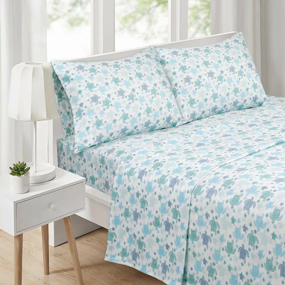 Bring in a little something breezy with the beauty of this tropical sheet set. The printed motif is lively and lovely, offering a bit of color and personality. The sheets are lightweight and machine washable for years of soft and lasting use. Features: Set includes 1-flat sheet, 1-fitted sheet, and 2-pillowcases (1-pillowcase in twin size), Lightweight design, Machine washable, Polyester microfiber, Fade resistant 12 in. – 15 in. pocket depth. Twin Dimensions: Flat sheet: 66 in. wide x 96 in. long. Fitted sheet: 39 in. wide x 75 in. long x 12 in. deep. Pillowcase: 20 in. wide x 30 in. long, Full Dimensions: Flat sheet: 81 in. wide x 96 in. long. Fitted sheet: 54 in. wide x 75 in. long x 15 in. deep. Pillowcases: 20 in. wide x 30 in. long, Queen Dimensions: Flat sheet: 90 in. wide x 102 in. long. Fitted sheet: 60 in. wide x 80 in. long x 15 in. deep. Pillowcases: 20 in. wide x 30 in. long, King Dimensions: Flat sheet: 108 in. wide x 102 in. long. Fitted sheet: 78 in. wide x 80 in. long x 15 in. deep. Pillowcases: 20 in. wide x 40 in. long. Country of Origin: China.