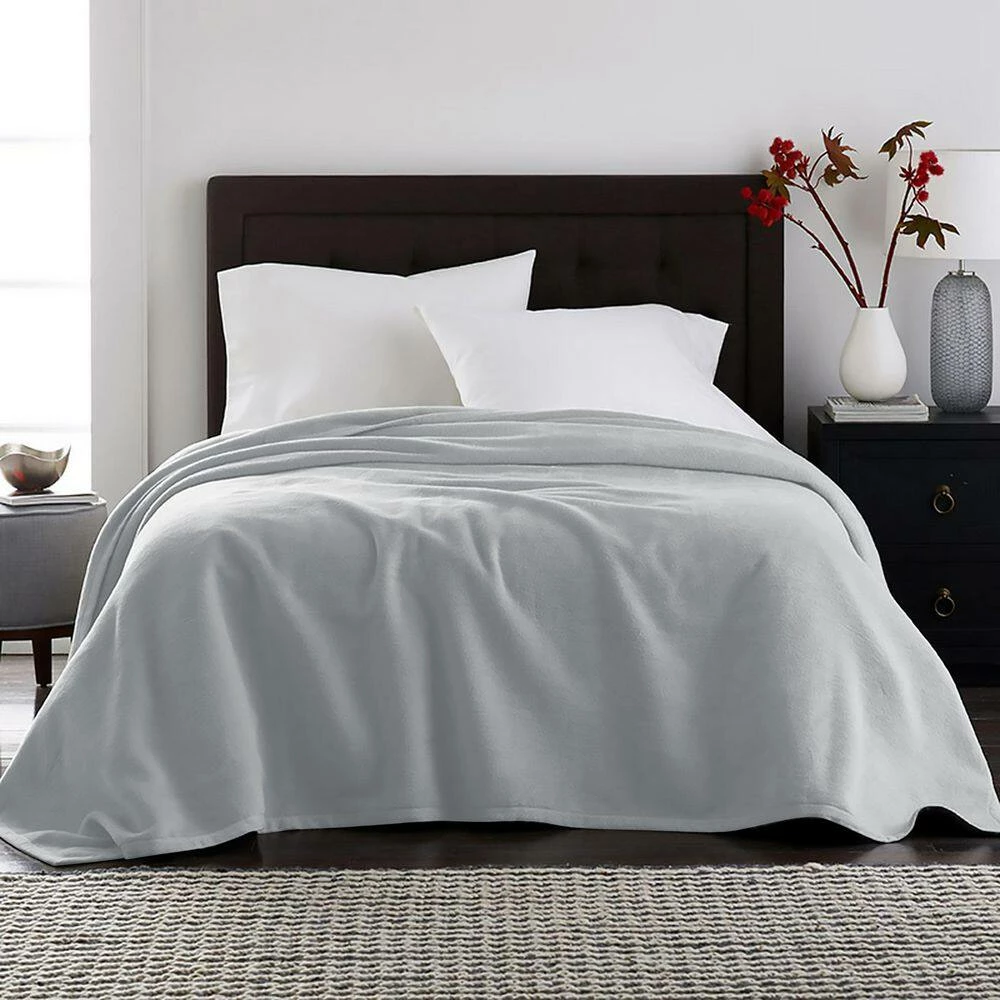 Wrap yourself in warmth and comfort with this Ultimate Plush Fleece blanket. Made from brushed and sheared microfiber for luxurious softness, this throw resists fading, piling and static for enduring beauty. After laundering, tumble dry this machine-washable throw using low heat to keep it in pristine condition. This blanket is available in various patterns and colors. Includes 1 plush blanket Heavy weight Solid Machine washable Polyester Available in the following colors: Khaki, light grey, leopard grey, mickey grey, grey, star grey, apricot, dark grey, stripe black, mineral blue, burgundy, olive, tan, white, brown, charcoal, jewel blue, pink and navy Twin Dimensions 66 in. W x 86 in. L Full/Queen Dimensions 86 in. W x 86 in. L King Dimensions 102 in. W x 90 in. L.