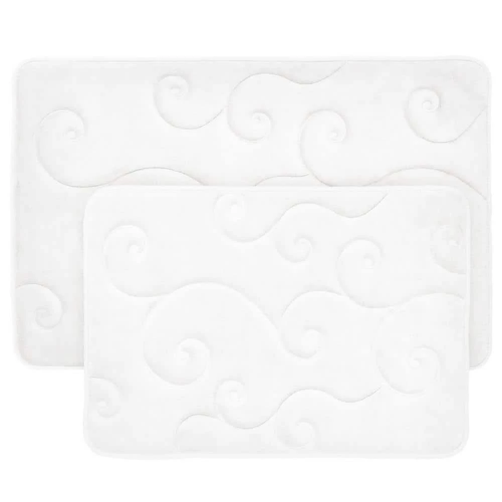 - Product details – materials: memory foam and 280 GSM coral fleece. dimensions: large – L 32.25 in. x W 20.25 in. x H 0.25 in.; standard – L 24.5 in. x W 17 in. x H 0.25 in. set of 2-bathroom mats. machine washable. color: white.