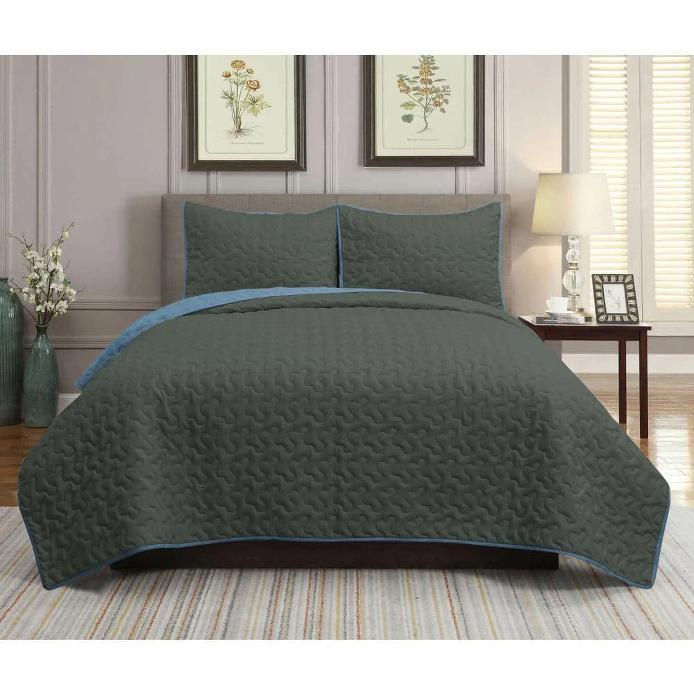 Upgrade your bedroom esthetic, with this 3-piece quilt set from Harper Lane. This microfiber set includes 1 quilt, and 2 pillow shams. A stunning vibrant print on the front, and solid on the reverse, makes this set great for 2 looks. All items are machine washable for easy care. Set includes 1 quilt, and 2 shams (1 sham in twin size) Lightweight Reversible Machine washable Shell: Polyester Microfiber Poly filled Twin Dimensions Quilt: 66 in. wide x 86 in. long Sham: 20 in. wide x 26 in. long Full / Queen Dimensions Quilt: 86 in. wide x 86 in. long Shams: 20 in. wide x 26 in. long King Dimensions Quilt: 104 in. wide x 86 in. long Shams: 20 in. wide x 26 in. long.